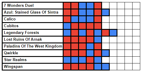 My girlfriend’s theory was that some of last year’s games were a chore (looking at you, WAR OF THE RING). But these are all games we knew we liked going in, and there’s never a feeling of “guess we should do another 10×10 game”. We’re always excited to play one of them.
