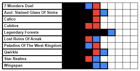 After purchasing a lot of STAR REALMS content at the UKGE last year, we finally got around to trying some of it this month. And it seems that the Colonies set plays more to my girlfriend’s strengths as she got her first victory of the year. We then decided to go straight into another game and try the Frontiers cards instead, and I came out on top. But the damage was already done, as my blue streak got red on it.