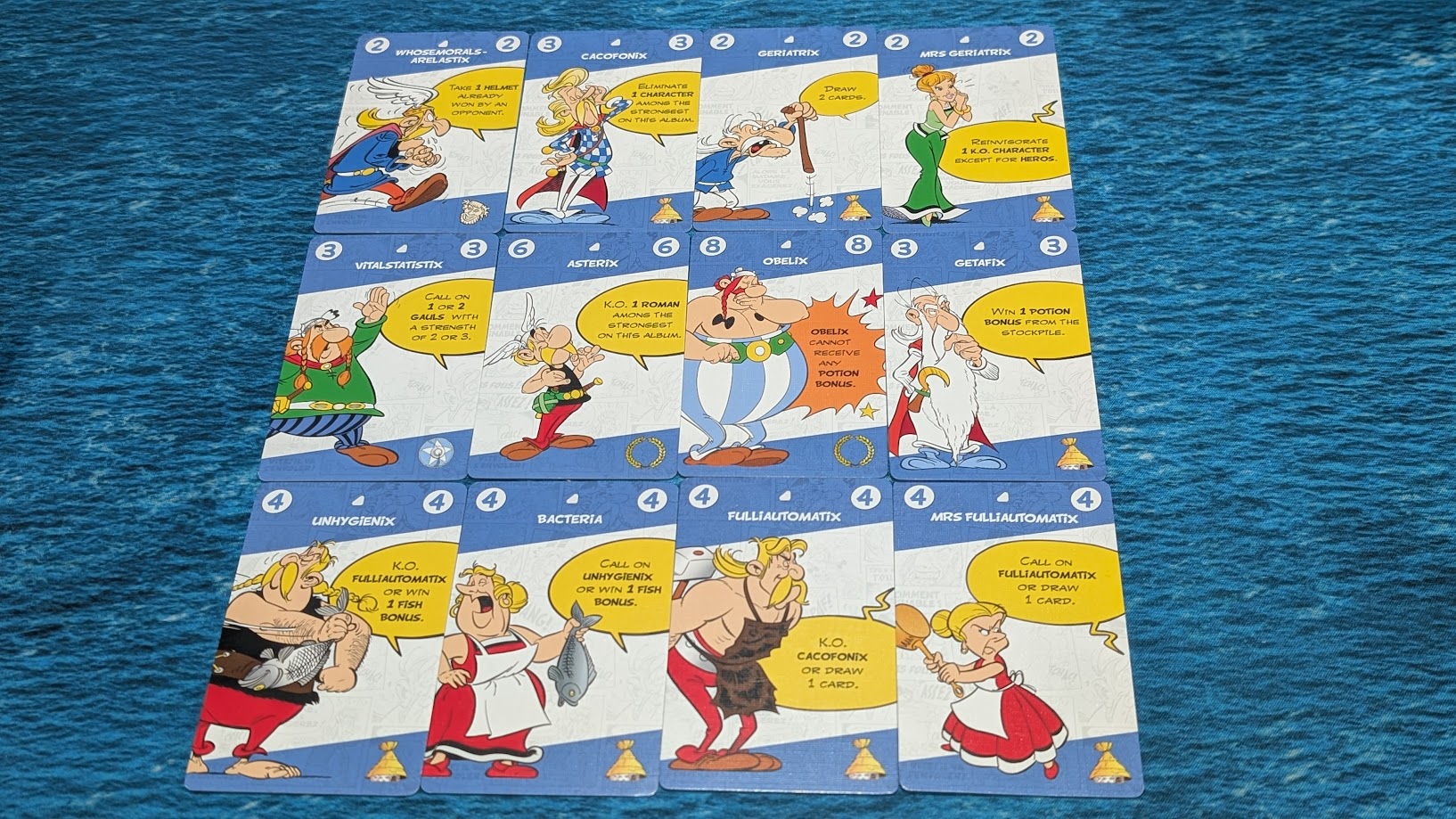 Then there is the theme, which is a double edged sword. If your a fan of Asterix, there are a lot of little nods to the source material to make you reminise and bring out a smile. But if you don’t know anything about the series, these are just coloured cards with numbers and powers, none of which tie in to the oddly name characters you hold in your hand. Obviously the source material is French, and the publisher is French, so it most likely isn’t an issue there. But outside of France, there is perhaps a limited market for the game being skinned this way.