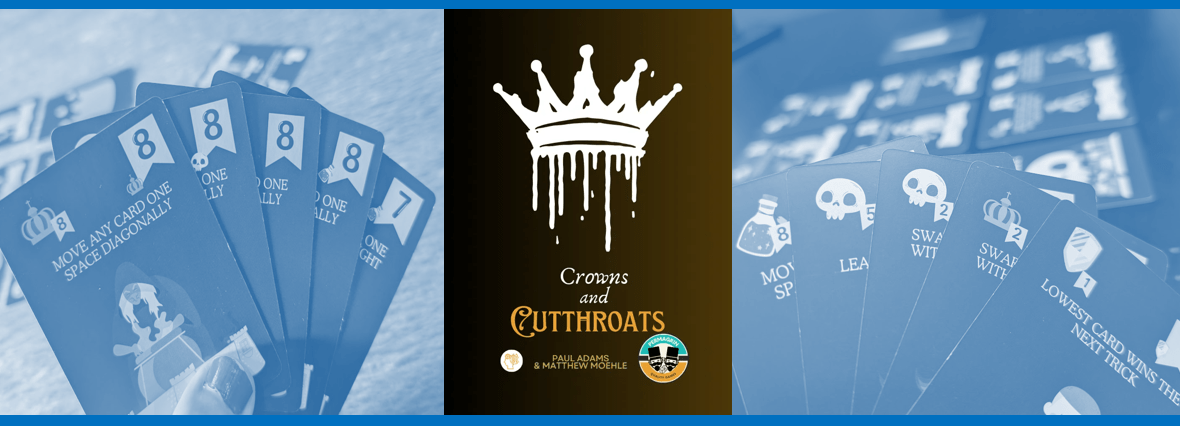 CROWNS & CUTTHROATS does the usual Trick Taking stuff while adding a cat ‘n’ mouse chase that is powered in different ways by the winner and loser of each trick.