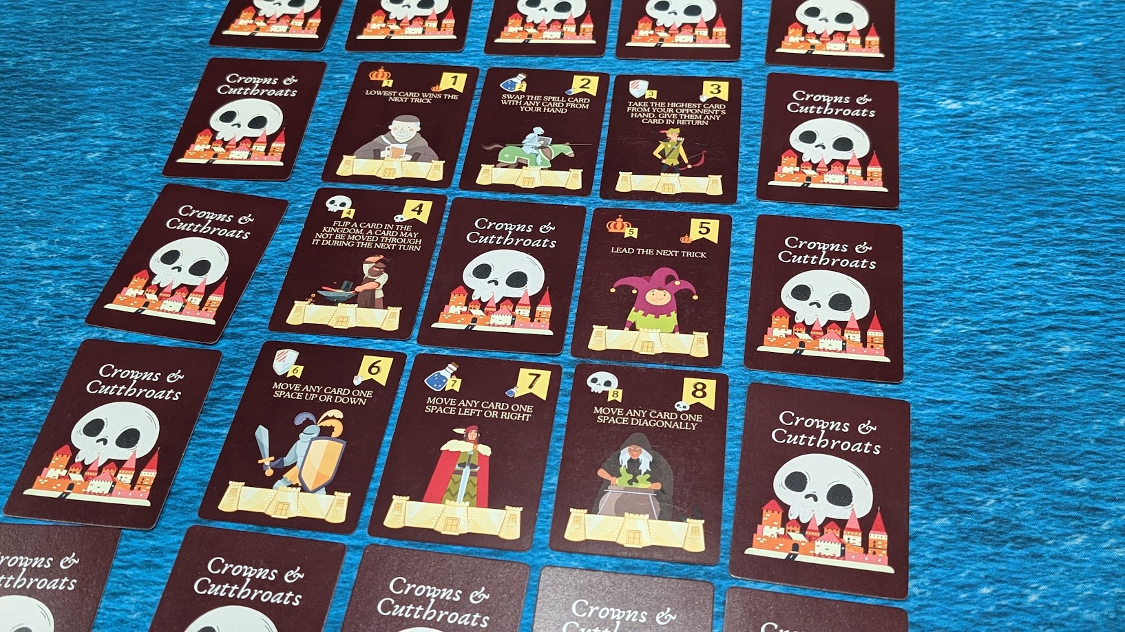 CROWNS & CUTTHROATS has a similar idea with the use of it’s card powers. There are four suits in the game, with cards in each suit numbered 1-8. Each number has it’s own potentially useful ability which is only activated by the tricks loser each turn.