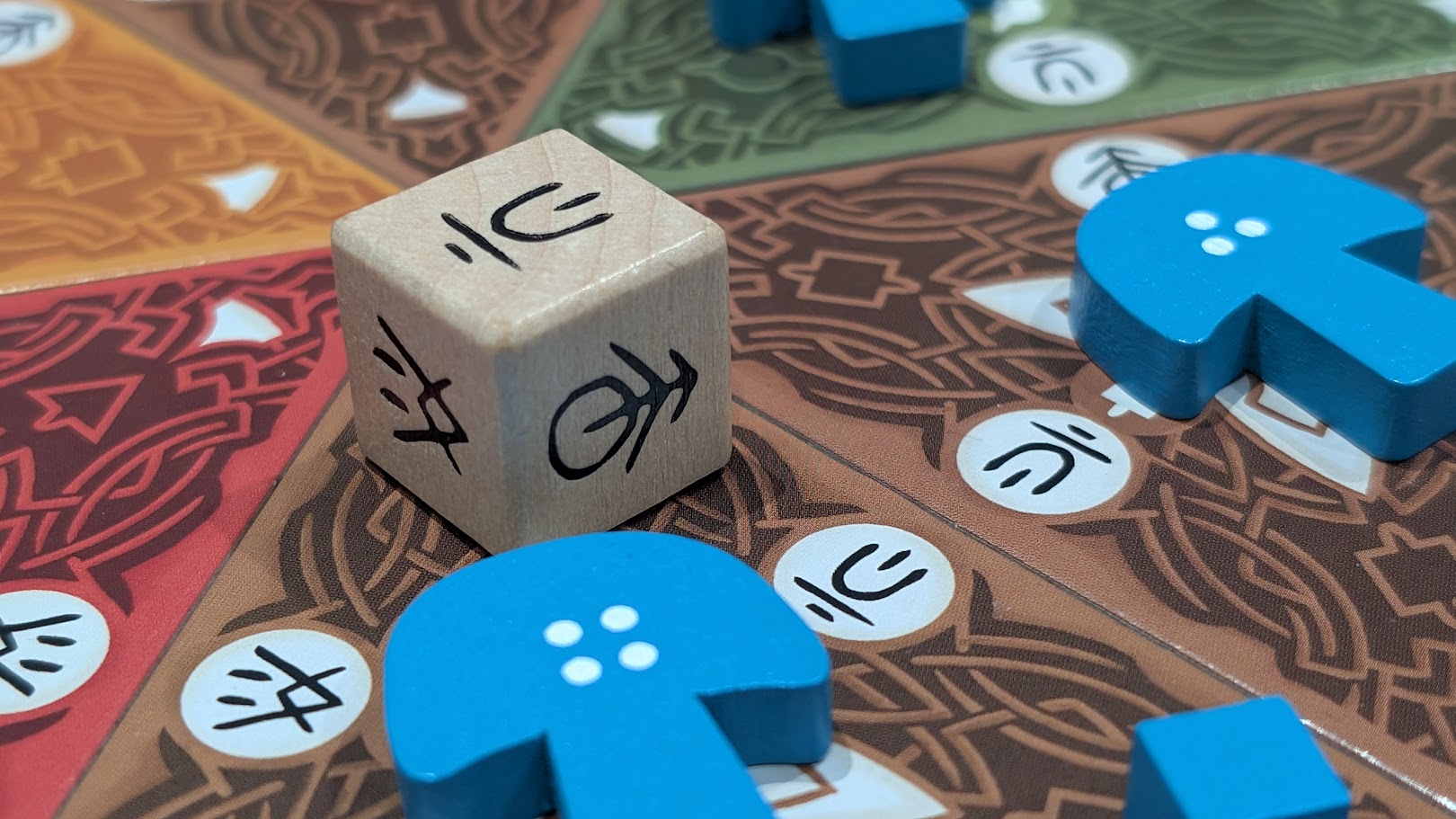 Beyond that, the art style for everything else (the player boards, the triangular tiles) is standout unique. It has a sort of Celtic vibe to it with the curved lines. The colours too are perfect for the theme, with nice earthy tones across everything. It’s most definitely a game that draws the attention with it’s overall look and production.