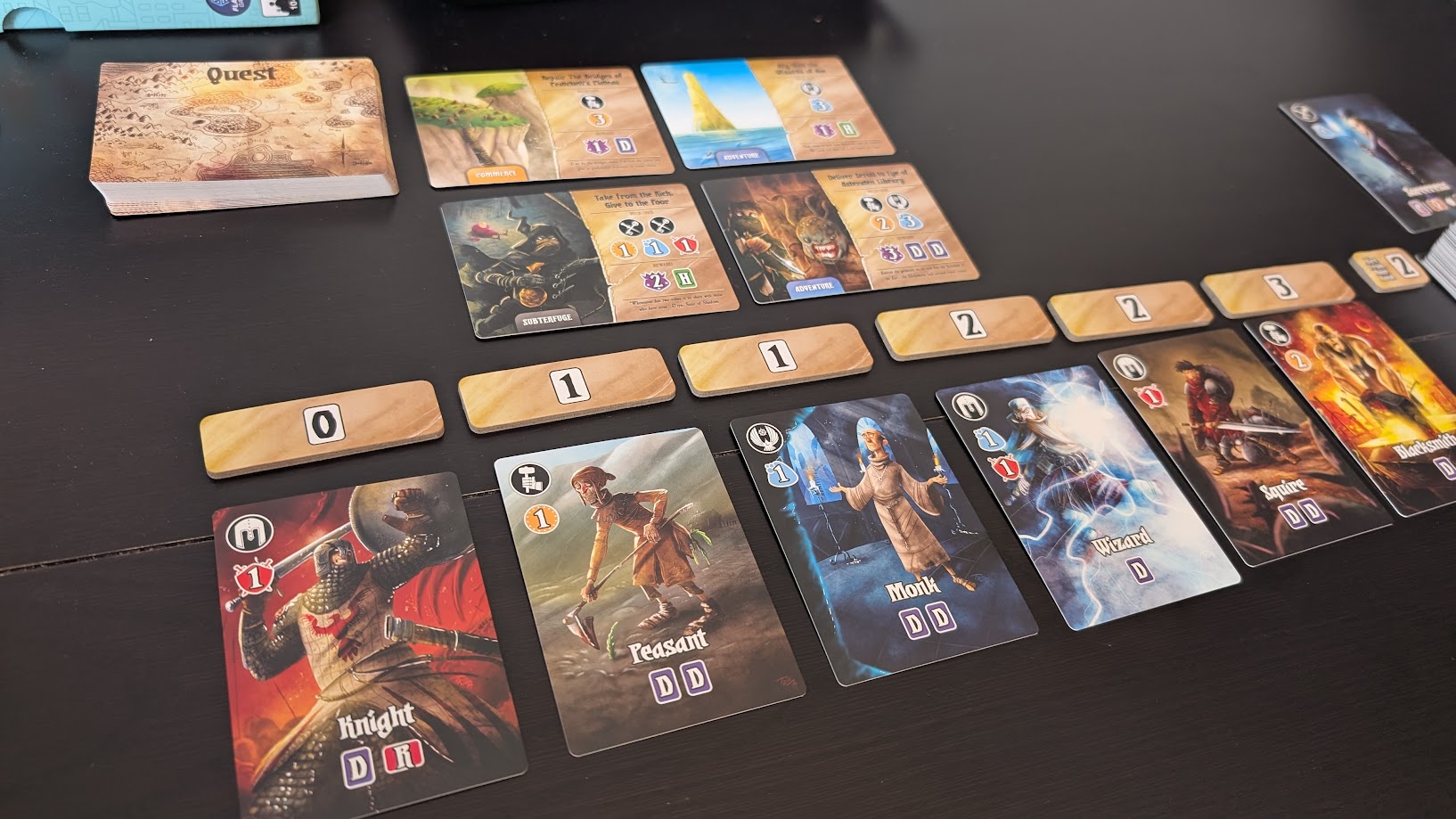 It’s not a big downer, but the game overall can be quite a tight race (usually only one quest card in it), so having another player interfer with your cards can set you back more than you’d like.