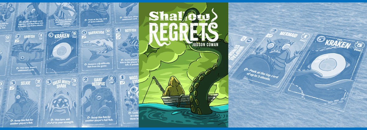 | – – CONCLUSION – – I bounced off of DEEP REGRETS, so it’s great that this more basic ButtonShy version scratches the ‘Regrets’ itch. The art work is outstanding, the abilities are equal parts fun and mean, and the whole game doesn’t outstay it’s welcome. It’s a shame that the expansion becomes a necessity to thicken the deck and take the edge out of losing fish so frequently. But overall, it’s fast become one of my favourite 18 Card games. |